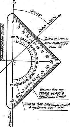 Рис. 13. Измерение путевого угла ПУ навигационным транспортиром