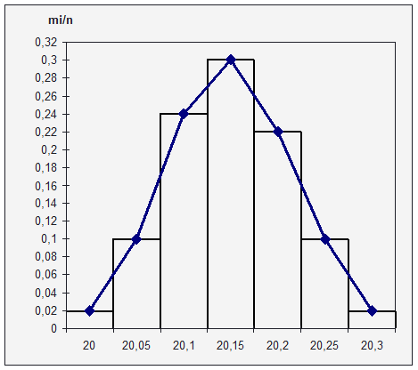 Совокупность значений действительных размеров заготовок, обработанных в одних и тех же условиях, расположенных по возрастанию, с указанием частот повторения этих размеров называется распределением размеров заготовок. Частота mi – количество заготовок одного размера в пределах заданного интервала (разряда). Отношение частоты к количеству всех измеренных заготовок партии называется частостью: