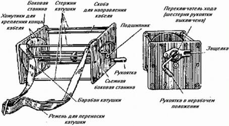 Телеграфно-кабельная катушка старого образца служит для размотки и намотки кабеля ПТГ-19 при помощи переносного станка.