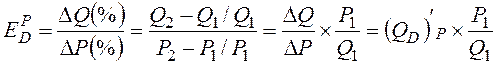 Для того, чтобы вычислить среднюю эластичность на отрезке применяется формула дуговой эластичности, при которой расчет ведется по средней точке интервала.