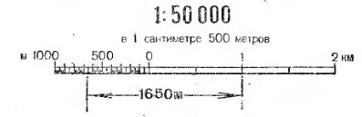 При работе с топографической картой необходимо знать ее масштаб, который показывает во сколько раз уменьшена схема местности на карте по отношению к ее реальным размерам. Масштаб необходим при вычислении расстояний по карте. Масштаб топографической карты бывает численным и линейным. Численный масштаб выражается дробью, и чем меньше знаменатель, тем крупнее масштаб топографической карты. Если отбросить последние два нуля, то получится масштаб в метрах, т.е сколько метров содержится в одном сантиметре на карте, что и указывается под численным масштабом.