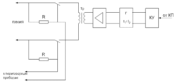Аппаратура промежуточного пункта содержит телефонный аппарат, усилитель передачи, усилитель приема и приемник тонального избирательного вызова (ПТИВ).