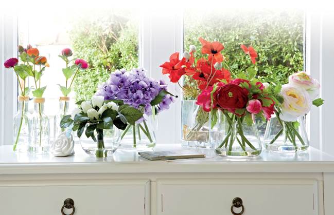 Необходимо помнить, что цветочные композиции не очень долговечны в отличие от цветов, растущих в горшках, поэтому требуют внимания и бережного ухода. Если нет времени или желания выращивать живые цветы или составлять из них букеты для декора, можно прибегнуть к искусственным цветам. Они бывают достаточно качественными, чтобы их ненатуральность не слишком бросалась в глаза. Их большой плюс – долговечность, немалое значение имеет и простота в уходе.