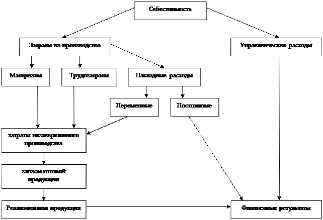 Калькулирование себестоимости по системе «директ-костинг» можно изобразить схематично (рис. 8). При этом более четко выявляется рентабельность изделий, так как разница между продажными ценами и ограниченной себестоимостью не затушевывается в результате списания постоянных расходов на себестоимость изделий и обеспечивается возможность переориентации производства на более рентабельные изделия.