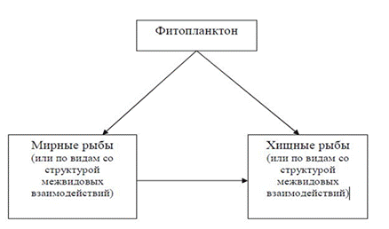 В основе моделирования сообщества лежит трофическая структура. Например, может использоваться следующая схема (рис.2):