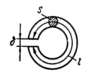 При снижении напряженности внешнего магнитного поля до нуля остаточная индукция будет равна Вr только в случае замкнутого сер дечника с сечением, одинаковым по всей длине магнитной линии. Если сердечник имеет воздушный зазор d (рисунок 2.8,б), то индукция становится меньше, чем Вr. В самом деле, сумма н. с. должна быть равна нулю, потому что отсутствуют внешние токи: