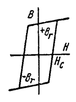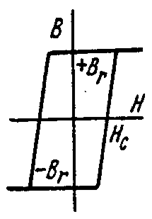 В текстурованных материалах при совпадении направления внеш него поля с направлением кристаллографических осей легкого намагничивания зерен скачкообразные повороты векторов намагниченности совершаются почти одновременно. Эти скачки происходят при напряженности, близкой к коэрцитивной, после чего векторы J и Н практически совпадают по направлению. Материалы с такой зависимостью В = f(H) называют материалами с прямоугольной пет лей гистерезиса (ППГ) и их качество оценивают коэффициентом прямоугольности: