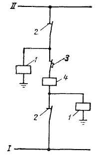 Пункты параллельного соединения для линий переменного тока выполняются с масляным выключателем, а реле напряжения выключается через понижающие трансформаторы напряжения.
