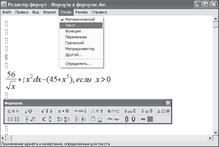 В нижней части панели редактора формул размещены шаблоны, предназначенные для построения формул – дробей, интегралов, сумм и других сложных выражений.