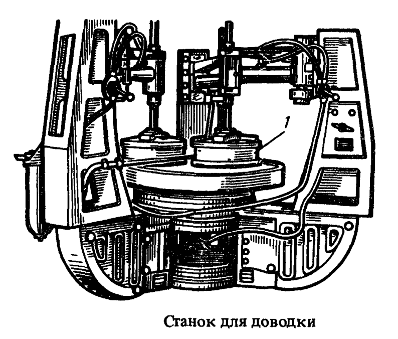 Предварительную доводку ведут на плите с канавками, а окончательную – на гладкой плите на одном месте, используя лишь остатки порошка, сохранившегося на детали от предыдущей операции.