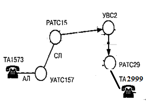 «Цепочка» соединения абонентов ТА1573 с ТА2999.