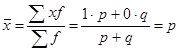 В статистике наличие альтернативного признака обозначается 1, а его отсутствие – 0. Доля вариантов, обладающих признаком, обозначается «p» , а доля вариантов, не обладающих – «q».