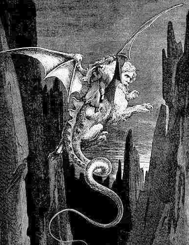 Герион – Круг седьмой – Третий пояс (окончание) – Насильники над естеством и искусством (лихоимцы) – Спуск в восьмой круг