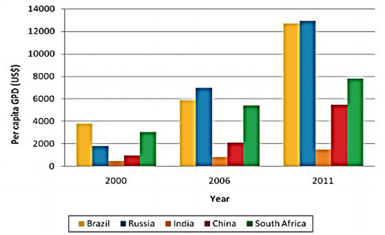 К 2014 году среди стран БРИКС по показателю ВВП на душу населения лидирует Россия.