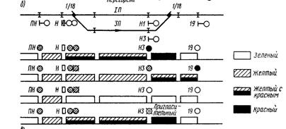 Рис. 7.1. Коди та допустимі швидкості зближення поїзда з колійними сигналами РИСУНКИ