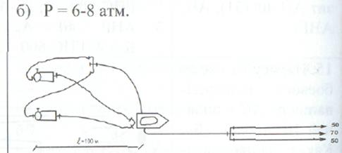 | 17. Нарисуйте схему забора воды одним и двумя гидроэлеваторами? Укажите давление перед гидроэлеватором, расстояния между АЦ и гидроэлеватором? |