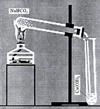 Например, при проведении ряда опытов, знакомящих со свойствами карбонатов и гидрокарбонатов, перед школьниками ставится цель изучить отношение солей угольной кислоты к кислотам и нагреванию. Выполняя первый опыт, ребята подбирают необходимые реактивы, наблюдают выделение газа, определяют его, оформляют записи в тетрадях и делают выводы. Во втором опыте учащиеся собирают прибор для разложения гидрокарбоната натрия, руководствуясь инструкцией, обращают внимание на его укрепление в лабораторном штативе, на продукты, образующиеся при нагревании соли, способы их обнаружения, оформляют записи, делают выводы. После выполнения опытов преподаватель объясняет характерные свойства солей угольной кислоты, ссылаясь на конкретные наблюдения учащихся, и дополняет их ответы. Так, обсуждая области применения солей угольной кислоты, он указывает, что свойство гидрокарбоната натрия (питьевая сода) разлагаться при температуре 200 °С используется в хлебопечении и т. д. Способность солей угольной кислоты взаимодействовать с кислотами применяется геологами в полевых условиях для определения наличия в минералах или горных породах карбонатов.