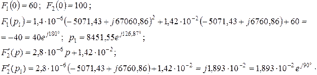 Корни характеристического уравнения комплексно-сопряженные, свободное напряжение запишем в виде: