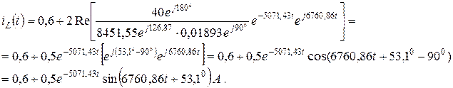 Найдем постоянную интегрирования А по независимому начальному значению тока в индуктивности iL(0 –)=0,769А из уравнения составленного на основании закона коммутации