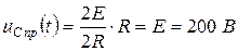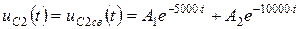 Корни характеристического уравнения вещественные и различные, напряжение на емкости запишем в виде:
