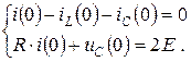 Из законов Кирхгофа, записанных для момента времени t=0, найдём iL/(0), uc/(0) и определим i/1(0):