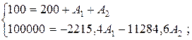 Решая систему уравнений (4.54), найдем постоянные интегрирования А1 и А2: А1 = −133,3 и А2 = 33,3.
