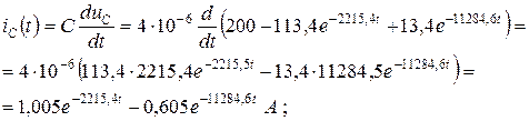 Подставим рассчитанные значения в теорему разложения (4,12), получим переходный ток: