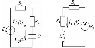 Напряжение между узлами электрической цепи (см. рисунок 4.21) равно нулю (Е − Е = 0), и электрическая цепь после коммутации распадается на две независимые цепи (см. рисунки 4.22 а и 4.22 б).