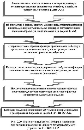 На рис. 2.20 показана технология (алгоритм) отбора, оценки и «вербовки» офицеров из воинских соединений для обучения в академии.