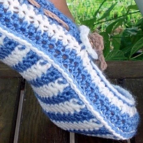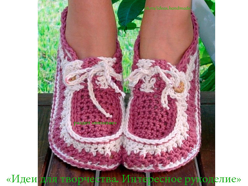 Тапочки вяжутся очень легко. Подошву вяжите так: наберите цепочку из 10 петелек, далее делайте столбик без накида во 2 петлю от крючка и остальные 8 петел по стбн. Итого у вас 9 петелек, то есть стбн. Это был 1 ряд. 2,3, 4, 5,6 ряд делаем воздушную петлю и дальше в каждый столбик или (петельку) вяжем по 1 стбн, 7 ряд делаем прибавление: вяжем по одному стбн в следующие 4 петельки, в 5 петельку вяжем 2 стбн, далее по 1 стбн в остальные 4 петельки, то есть у вас должно быть 11 стбн. 8 ряд и по 20 вяжем в каждую петельку по 1 стбн, итого 11 петелек в каждом ряду, но при этом не забываем делать воздушную петлю в начале каждого ряда. 21 ряд в первые 4 петельки по одному стбн, далее в 5 и 6 петельку по 2 стбн и остальные 4 петельки по 1 стбн. 22 ряд по 26 воздушная петля и далее в каждую петельку по 1 стбн, итого 12 петелек, то есть стбн. 27 ряд делаем убавление: вяжем первые пять петелек по 1 стбн, а 6 и 7 петельку провязываем вместе стбн, следующие 5 петелек по 1 стбн в каждую, должно получиться 11 стбн. 28 ряд воздушная петля и в каждую петельку по 1 стбн, итого 11 стбн. 29 ряд делаем убавление так: первые 4 петельки вяжем по 1 стбн, далее 5,6,7 петельку провязываем вместе одним стбн, следующие 4 петельки по 1 стбн, должно быть 9 стбн. 30 ряд по 1 стбн в каждую петельку и у вас должно быть 9 стбн. 31 ряд снова убавление: первые 3 петли вяжем по 1 стбн, следующие 4, 5, 6 петельку вяжем вместе одним стбн и далее последние 3 петли по 1 стбн в каждую. У вас долно быть 7 стбн. 32 ряд по 1 стбн в каждую петельку, в итоге 7 стбн. Это был последний ряд ступни. Нить не отрывайте. Далие обвязываем стороны по 1 стбн. На стороне должно выйти 35 стбн, потом на пяточке по 1 стбн и должно быть 7 стбн. Следующая сторона опять по 1 стбн, в итоге должно быть 35 петелек в носочке, где первый столбик делаем стбн. Следующая петелька пстб., следующие 3 петли по одному стсн, далее пст и последняя петля стбн. Завершаем работу. В окружности у вас длжно быть 78 петель. Отрываем нить. Ступня готова (ой простите, при обвязке на пяточке должно быть 9 стбн). Намечайте 12 точек, где вы будете делать убавление, как показано на тапочке. Теперь приступаем к бокам. Вяжем так. Сделайте соединительную петельку, то есть присоедините нить там, где вы будете делать хлястик или (как это по-русски незнаю, извините). И потом делаем 2 воздушные петли и начинаем вязать в сторону пяточки. Изнаночной стороной держим к вам, то есть к лицу. 1 ряд : По 1 пст в каждую петлю за заднюю стенку петельки, то есть это будет петелька, которая к вам, но там, где вы наметили, делаем убавление, то есть 2 петельки одним пст и так по кругу. В итоге у вас должно быть 66 пст, соедините со 2 воздушной петелькой. Нить не обрывайте, продолжаем вязать. 2 ряд : 2 воздушные петли, разворачиваем вязание и вяжем по 1 пст в каждую петельку. Воздушные петли считаем за первый пст, в итоге 66 пст соединяем со 2 петелькой на воздушном столбике. 3 ряд: делаем 2 воздушные петельки, воздушные петельки считаются как первый пст. Разворачиваем вязание и в первую петельку делаем полустолбик не за петельку, а за предыдущий столбик. Следующая петля пст и так до конца ряда. В итоге у вас должно быть 66 пст, 33 из них пст за петельку и 33 пст за передний столб. Соединяем со 2 петелькой на воздушном столбике. 4 ряд: Делаем 2 воздушные петли, поворачиваем вязание и вяжем по 1 пст в каждую петельку, в конце ряда соединяем со 2 петелькой на воздушном столбике, поч