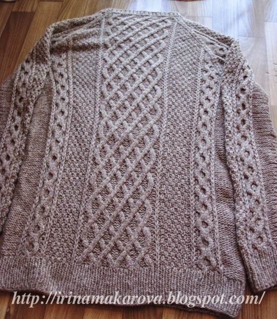 Затем на отложила и связала рукава до пройм на прямых спицах!