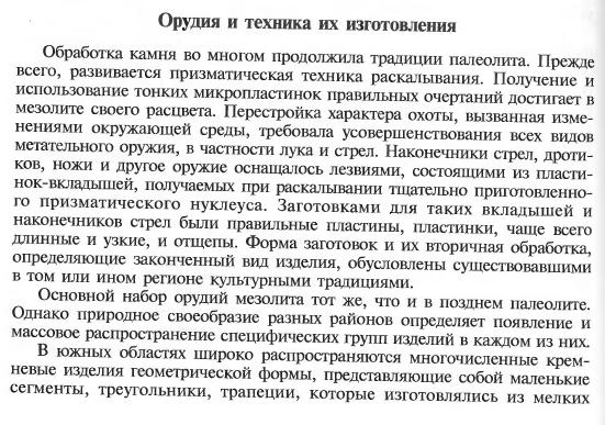 Основные категории орудий труда. Появление лука и стрел. Микролиты.