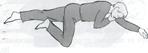 5. Придание устойчивого бокового положения. Следует положить пострадавшего ровно, снять очки, если имеются, после этого поднять ближнюю руку пострадавшего и положить ее перпендикулярно туловищу, затем взять дальнюю руку пострадавшего и приложить ее к щеке пострадавшего тыльной стороной при этом следует продолжать ее удерживать. Далее надо взять дальнюю ногу пострадавшего под коленку и поставить ее на стопу. Затем, надавливая на колено согнутой ноги надо повернуть пострадавшего набок притянуть ногу к животу и слегка запрокинуть голову. В этом положении пострадавший должен дожидаться приезда скорой медицинской помощи.