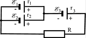 ) соединены, как показано на рисунке. Определите силу тока в батареях и реостате.