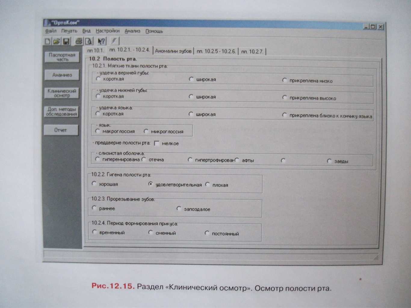 В результате анализа данных об объеме комплексной диагностики, логического их упорядочивания и коллективного обсуждения с врачами клиники ортодонтии и детского протезирования МГМСУ, а также учитывая данные отечественной и зарубежной литературы, была разработана карта ввода информации (рис. 12.9), состоящая из 7 основных разделов: