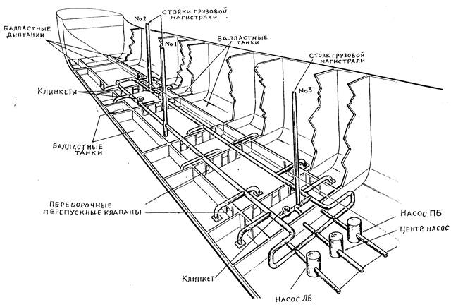 Для приема и выгрузки груза на танкерах предусматриваются грузовые системы, принимающие и распределяющие груз по танкам.