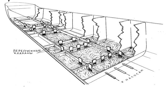 Рис.2.7. Схема грузовой системы с переборочными клапанами.