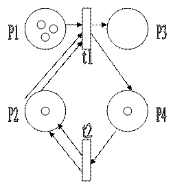 Графически сети Петри можно представить в виде двудольного ориентированного графа, где множества Р и Т определяют множество вершин, а функции I и О определяют дуги. При этом функция I определяет дуги, входящие в вершины множества Т, а функция О определяет дуги, выходящие из вершин множества Т.