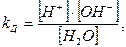 Это обратимый процесс. Константа диссоциации воды запишется: