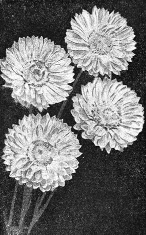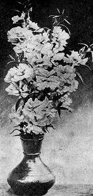 Маргарита (рис. 87), как и Шабо, имеет массу разновидностей в чистых окрасках. Разновидностью Маргариты является исполинская французская гвоздика (Malmaison).