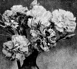 Гвоздика «Дитя из Ниццы», соединяющая в себе раннее цветение Шабо и красивые формы французских гвоздик; этот сорт, несомненно, имеет большое будущее. Другие сорта голландской гвоздики, как-то: французские ремонтантные гвоздики, американские всегда цветущие гвоздики, будут рассмотрены в отделе оранжерейных растений.
