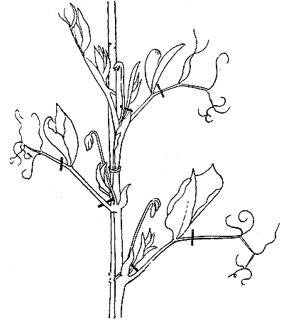 На рисунке 92 показана обрезка горошка с целью получения крупных выставочных цветов. Не следует допускать образования завязей, иначе растение прекращает цветение.