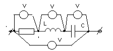 42. В цепи синусоидального тока все четыре вольтметра показывают одно и то же напряжение 54 В. Написать выражение входного мгновенного напряжения u, если начальную фазу напряжения на идеальной катушке принять равной 38 градусов.