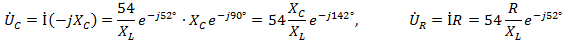 напряжений , если R2 =5 Om, XL =4 Om, XC =4 Om