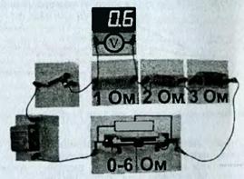 Показания включенного в цепь амперметра даны в амперах. Какое напряжение покажет идеальный вольтметр, если его подключить параллельно резистору 3 Ом?