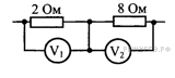 Показания вольтметра даны в вольтах. Чему будут равны показания вольтметра, если его подключить параллельно резистору 2 Ом? Вольтметр считать идеальным.