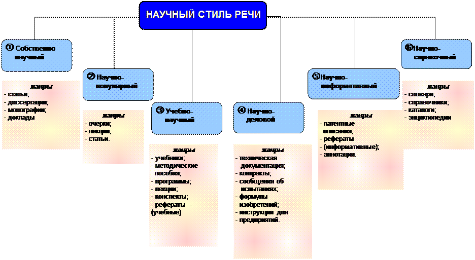 Структурно-логическая схема "Научный стиль речи и его разновидности"