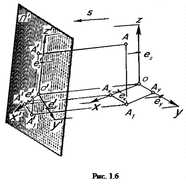 Рассмотрим на примере способ построения аксонометрических проекций (рис. 1.6).