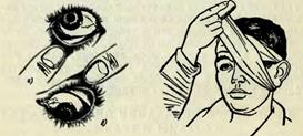 Инородные тела в виде мелких частиц (осколки металла, камня, дерева, песчинки, насекомые и пр.), попадая в глаз, вызывают боль, слезотечение и могут привести к его повреждению и снижению зрения. Если в глаз попала соринка, то можно удалить ее, промывая глаз струей воды (из стакана, с ватки или марли, с помощью питьевого фонтанчика), направляемой от наружного угла глаза (от виска) к внутреннему (к носу). Можно также вывернуть веко и удалить соринку чистой влажной ваткой или чистым носовым платком. Тереть глаз не следует.