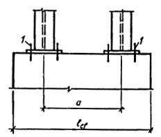 3.19. Для сквозных стальных колонн, имеющих раздельные базы (черт. 22), величина расчетной нагрузки Р, приходящаяся на один болт, определяется по формуле